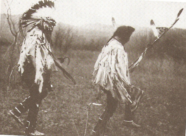 Medicine Crow (right) and Shows-a-Fish (left) leading a dance.