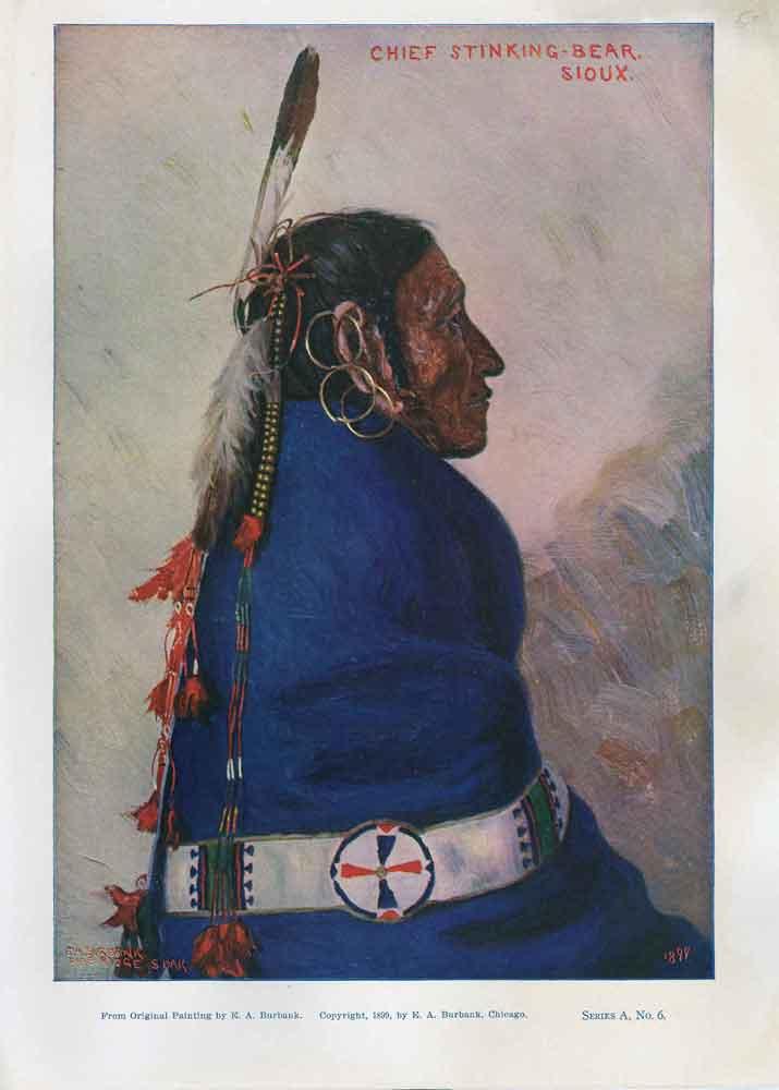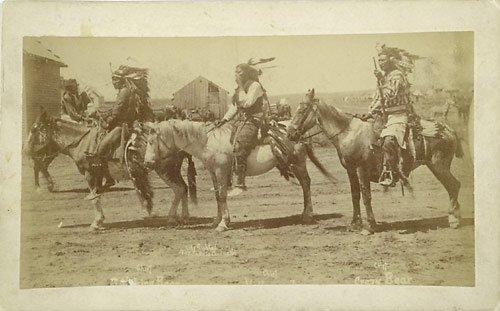 The flag he is wearing: could this be from a 4th of July celebration? Left to right: Stinking Bear, Hollow Wood, Crazy Bear (ca. 1890) By Heyn With Painted Horse In 1907 This is a Burbank painting.